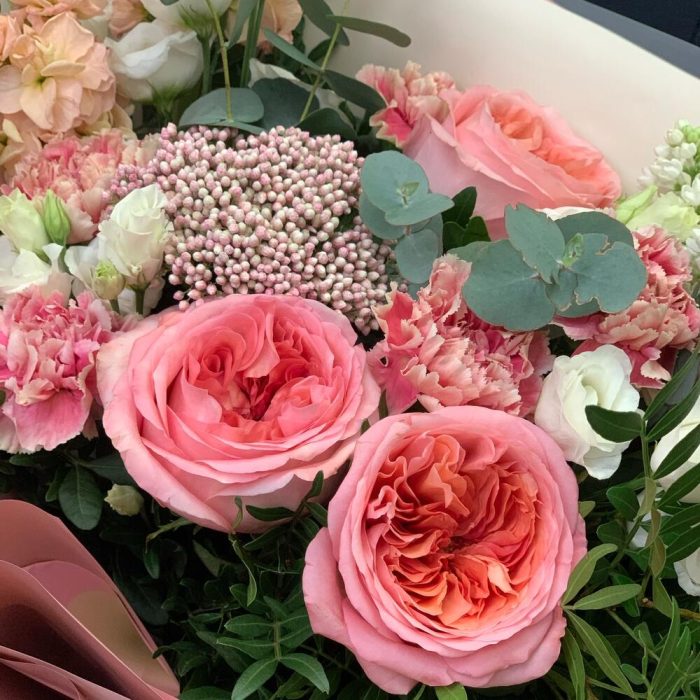 “Эвкалиптическая роскошь” гортензия и пионовидная кустовая роза