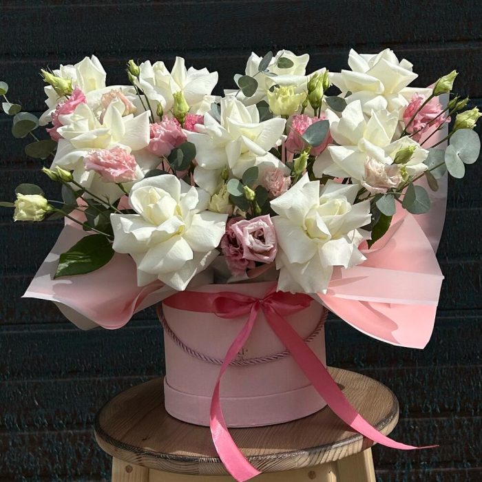 Альстромерии, Гвоздики, Кустовые розы, Лизиантусы, Розы, Хризантемы