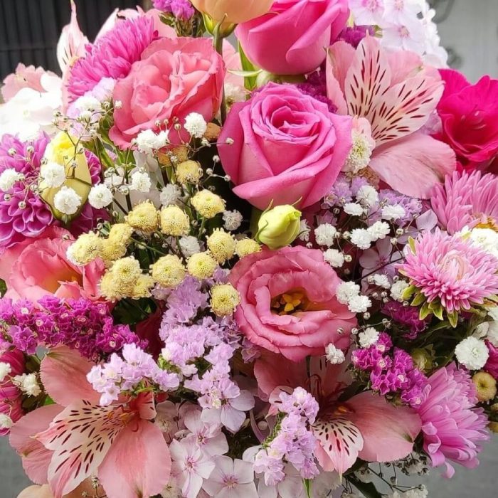 Роза – 4 шт. хризантемы – 8 шт. Гипсофила – 3 шт. Альстромерия – 8 шт.