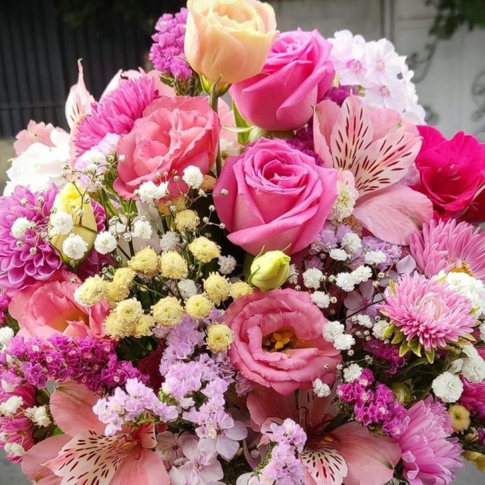 Прекрасный, яркий букет из красивейших сезонных цветов.