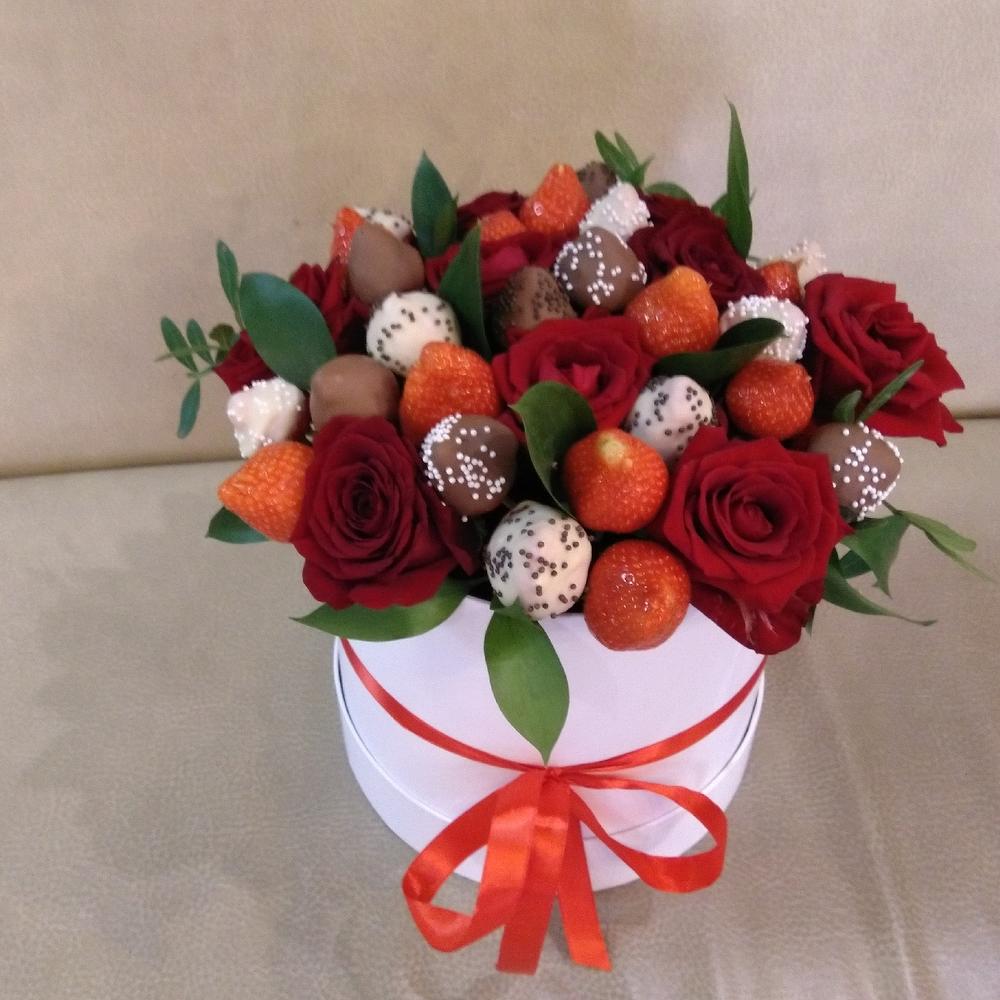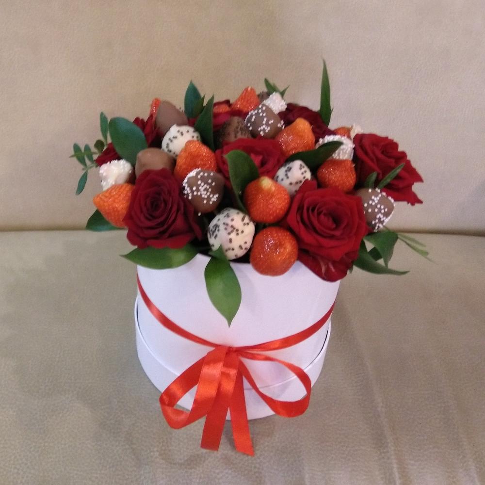 Клубника в шоколаде в шляпной коробке