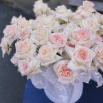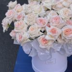 Коробка шляпная – 1 шт.Оазис флористический – 2 шт.Роза – 51 шт.