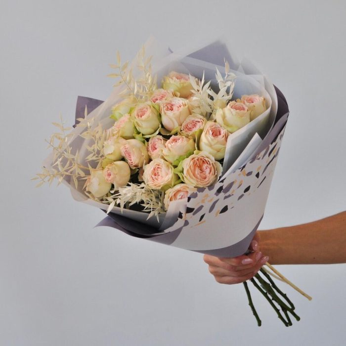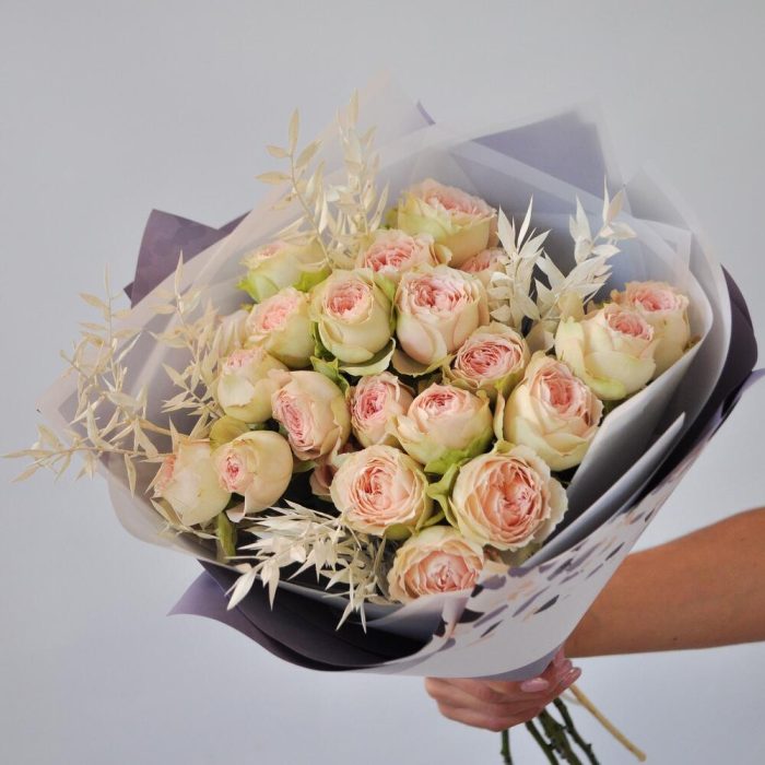 “Эвкалиптическая роскошь” гортензия и пионовидная кустовая роза