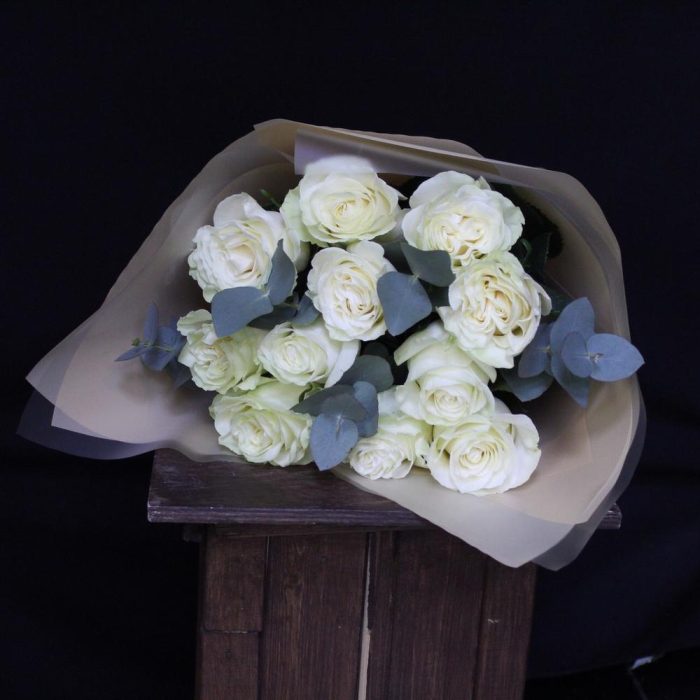 mono bouquet 56 из 11 роз сорта Mondial с эвкалиптом