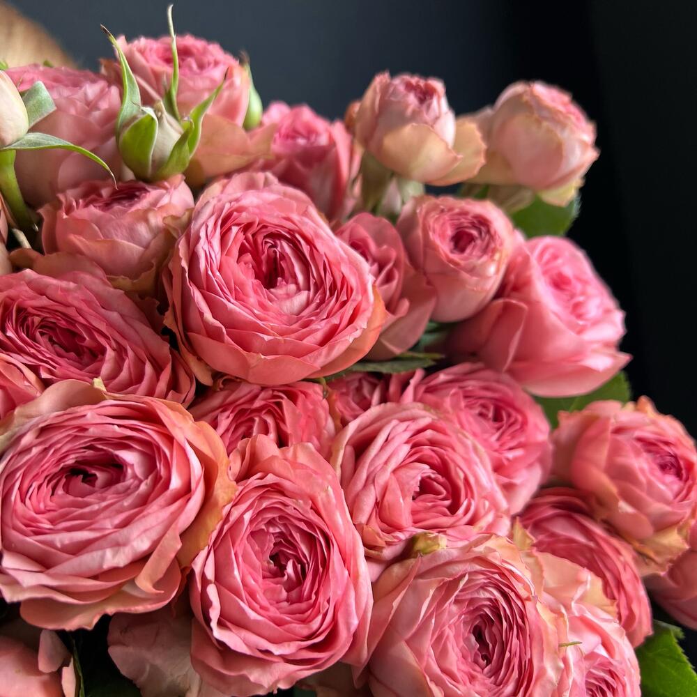 Кустовая роза – 11 шт.Лента атласная – 1 шт.