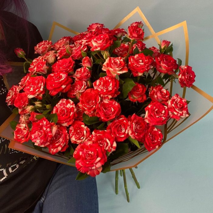 Кустовая роза – 7 шт.Упаковка дизайнерская – 2 шт.Лента атласная – 1 шт.