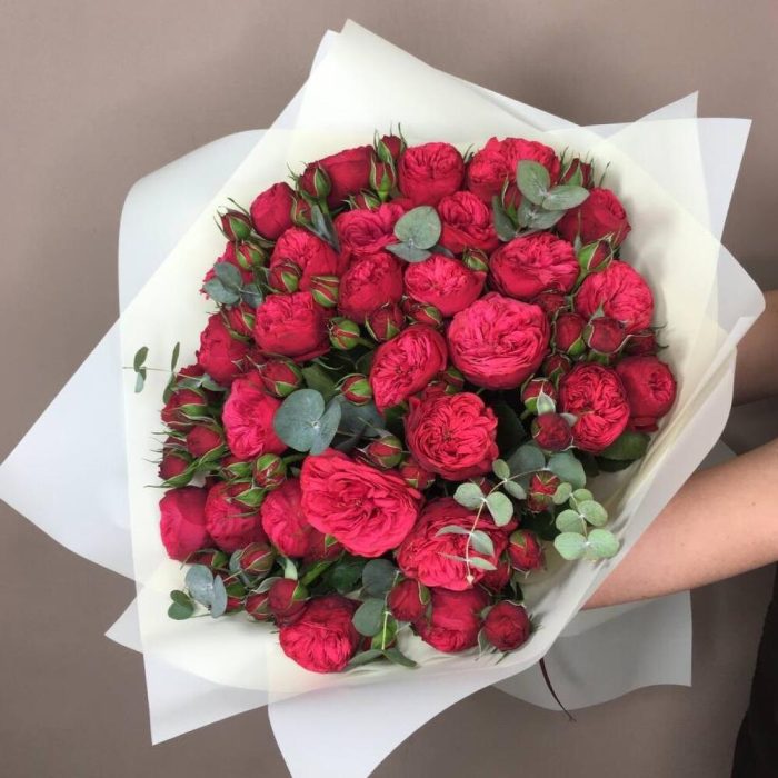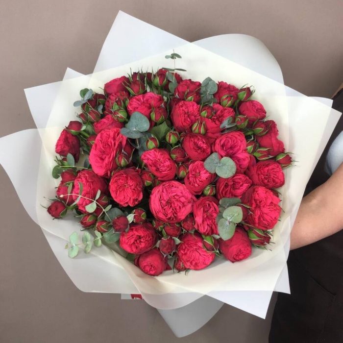 Пионовидные красные розы.35 кустовых роз.