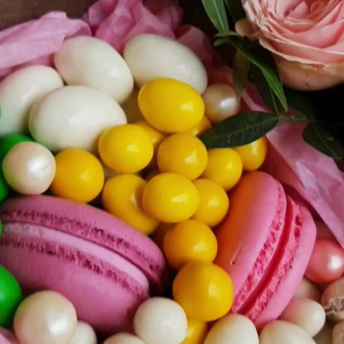 Роза кустовая – 3 шт.Хризантема Сантини – 1 шт.Конфеты Raffaello – 2 шт.Фисташка – 1 шт.Зефир в шоколаде – 5 шт.Голубика – 100 гр.Черешня – 280 гр.Пирожные макарон – 4 шт.Роза шоколадная – 1 шт.Фисташки – 30 гр.крем мед medolubov – 240 гр.банан сушеный – 150 гр.кешью в белом шоколаде – 100 гр.арахис в сахарной глазури – 140 гр.арахис в кунжуте – 140 гр.смородина в шоколаде – 20 гр.арахис в белом шоколаде – 100 гр.арахис в цветной глазури – 160 гр.рисовые шарики в шоколаде – 10 гр.транспортировочный крафт пакет – 1 шт.
