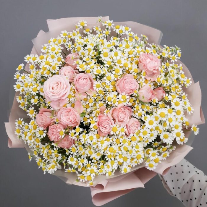 Ромашки с пионовидными розами