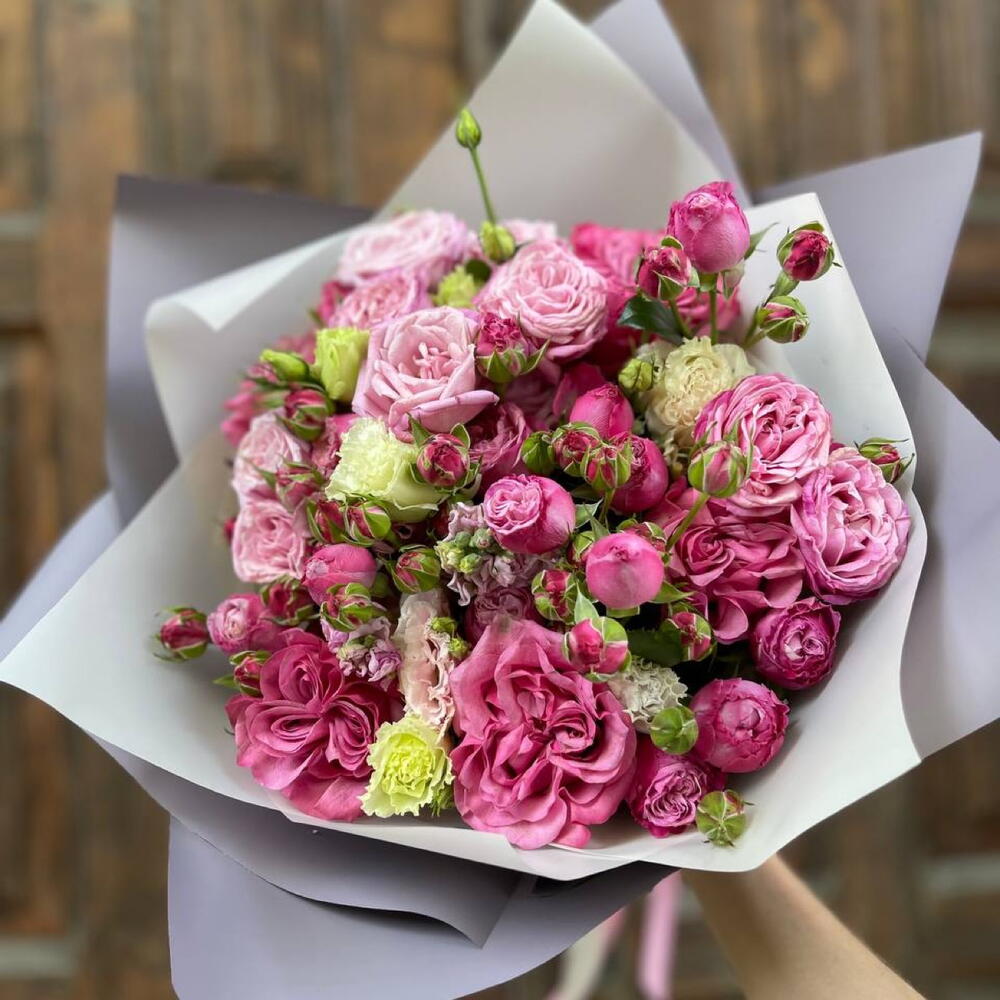 Гвоздики, Кустовые розы, Пионовидные розы, Розы