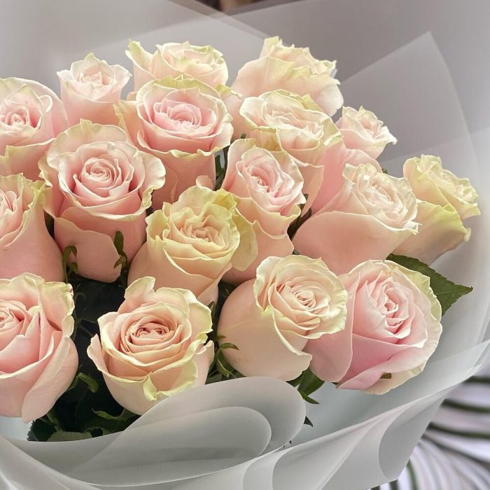 Букет из нежно-розовых пионовидных роз не оставит никого равнодушным.Пышное раскрытие,необычные лепестки и цвет роз сорта Пинк мондиаль приводят в восторг.Каждый наш букет собран с заботой и большой любовью. Ко всем букетам мы прикрепляем памятку по уходу и коизв(подкормка для срезанных цветов),чтобы цветы радовали получателя как можно дольше.Радуйте себя и своих близких