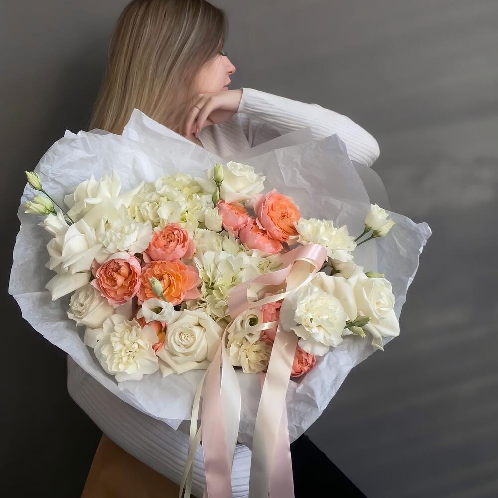Категорий: Гвоздики, Гортензии, Лизиантусы, Пионовидные розы, Розы