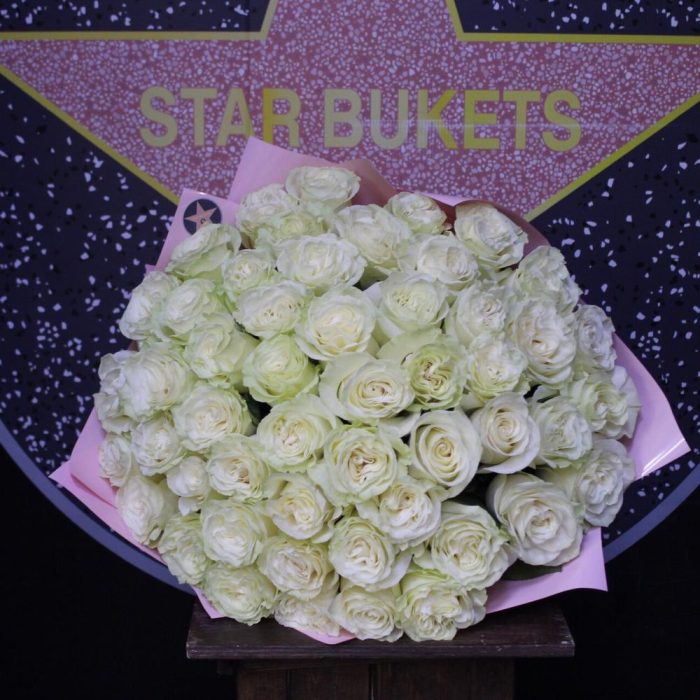 Роза Мондиаль – 51 шт.Пленка дизайнерская – 3 шт.Лента атласная – 2 шт.