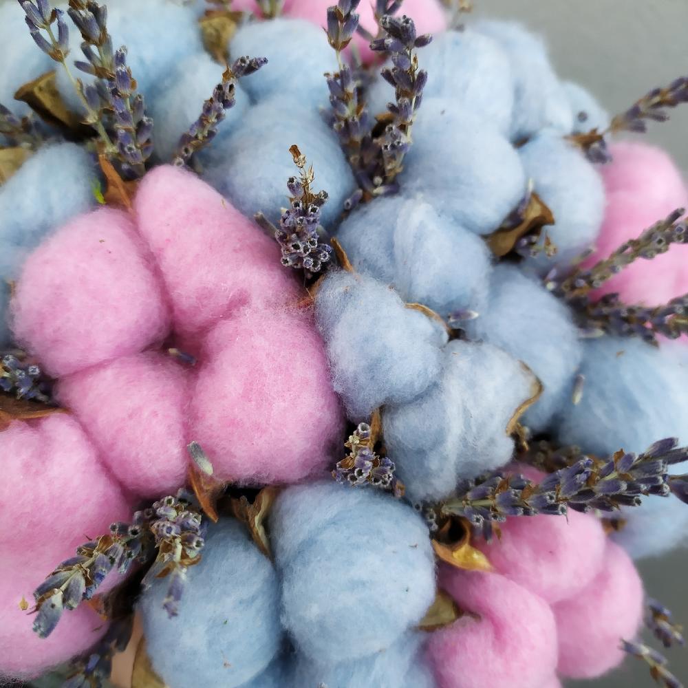 «Лавандовое созвездие» Букет из розы, гвоздики, статица и хлопка