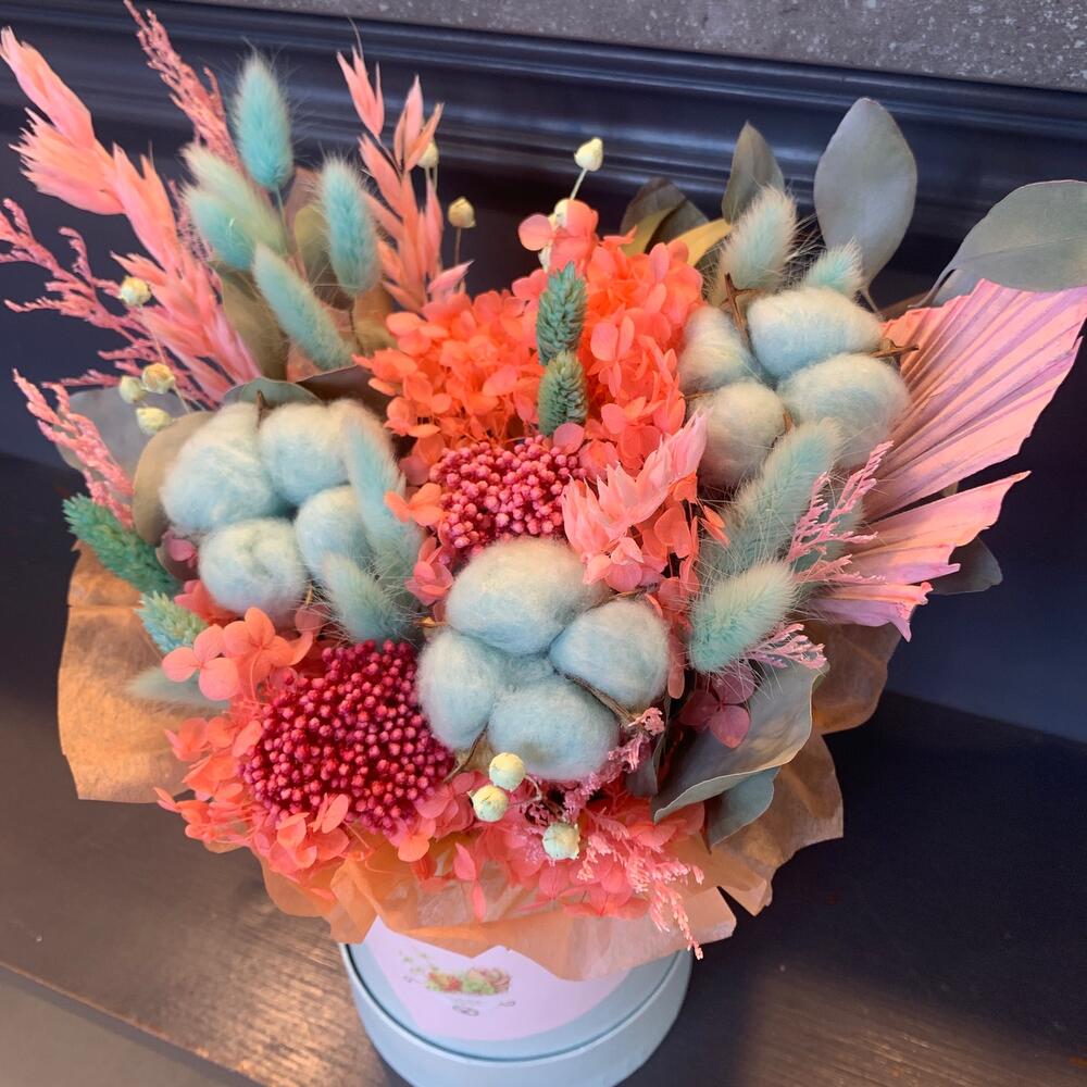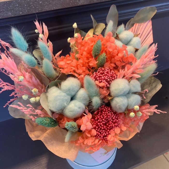 “Атлас☁️” – цветочная композиция с зефиром в деревянном ящике